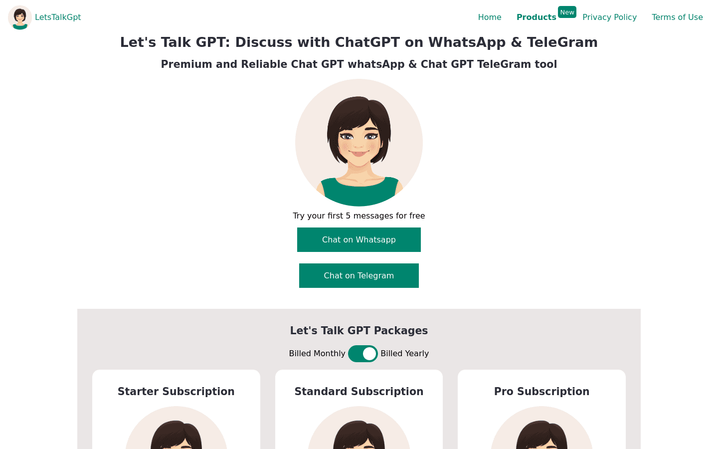 LetsTalkGPT is an online service that allows you to chat with ChatGPT using WhatsApp and Telegram. With a simple and instant setup, you can have the best WhatsApp GPT and ChatGPT Telegram experience right at your fingertips. Available on various platforms and with both free and paid plans.