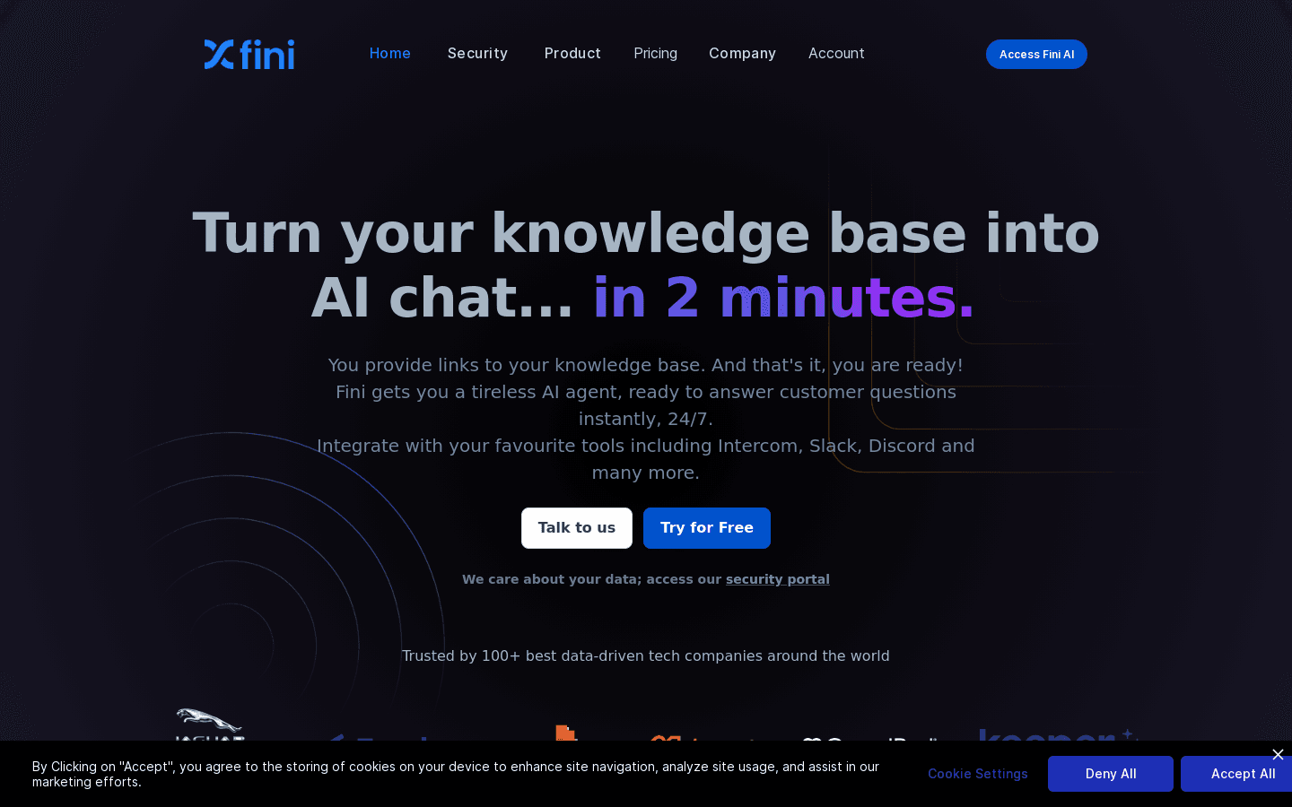 Fini is an AI chat service that turns your knowledge base into a tireless customer support agent in just 2 minutes. It integrates with popular tools like Intercom, Slack and Discord. The service offers free and paid plans, and is available through their website. The only obstacle is social auth. Fini also helps increase retention with AI-based predictions of user churn with 85% accuracy.
