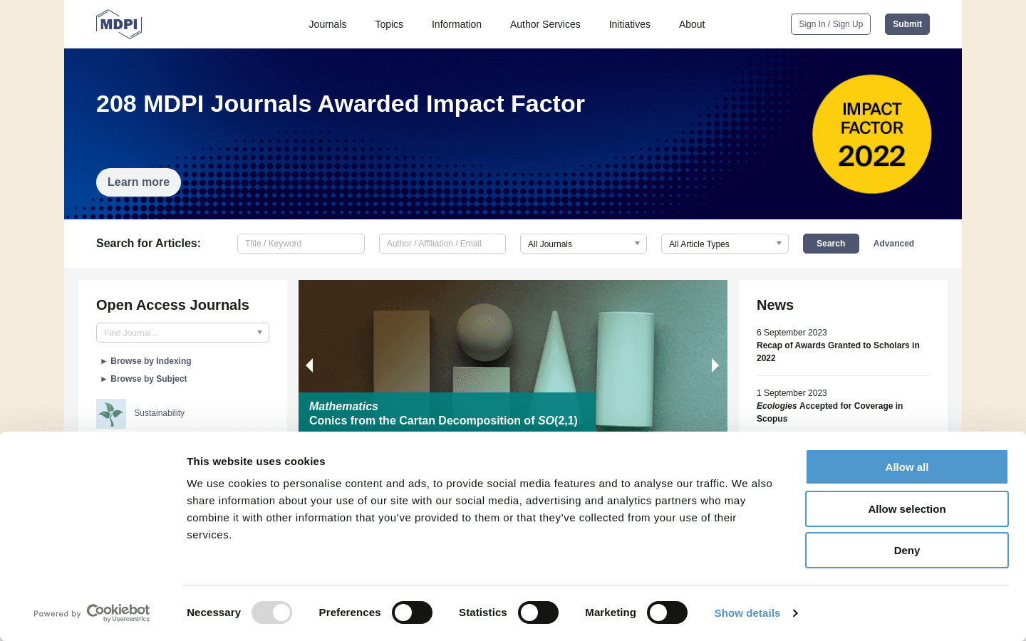 MDPI is a free online service that allows you to search for articles. With around 19 million monthly visits, you can access a wide range of open access journals on various subjects.