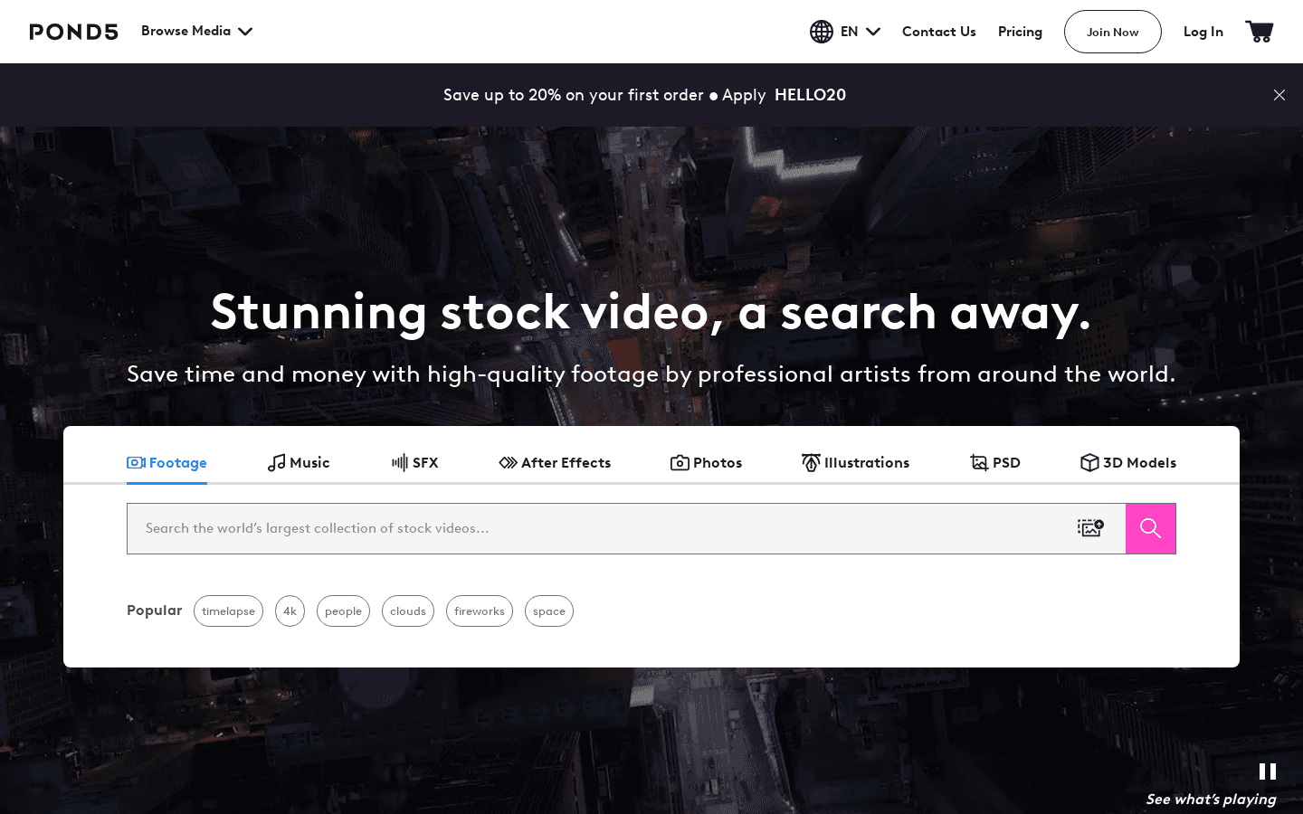 POND5 is a website offering a vast library of HD & 4K stock videos, music tracks, motion graphics, and images. With a user-friendly search feature, find the exact content you need. Their dedicated team ensures customer satisfaction.