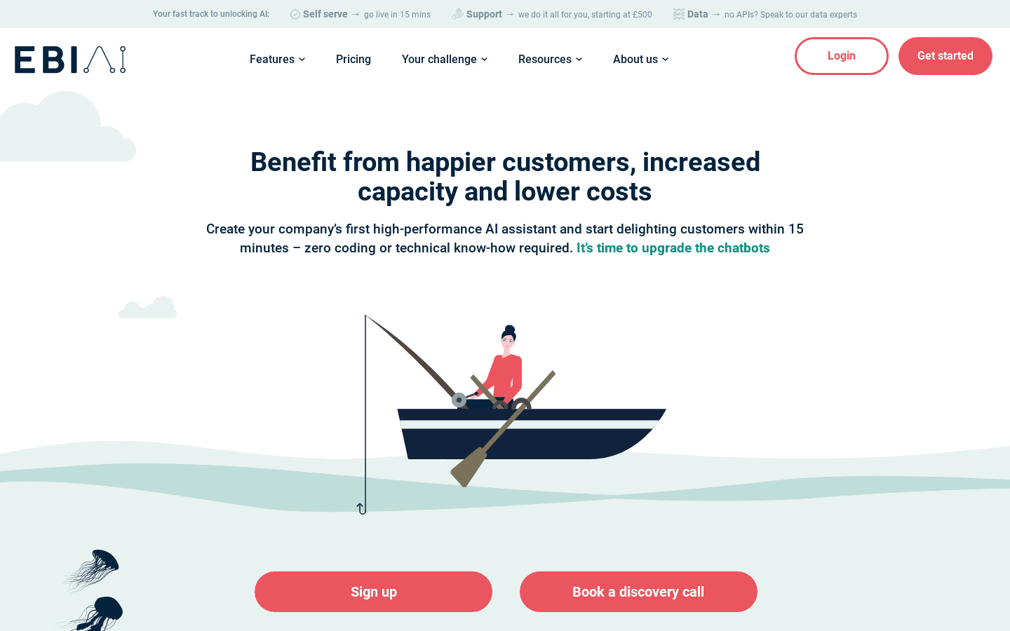 EBI.AI is an online service that generates code for AI assistants, resulting in happier customers and lower costs. It offers both free and paid plans and can be accessed via their website. Obstacles include email and account registration. With monthly visits around 40,000, it takes minutes to set up and can handle 85% of routine enquiries.
