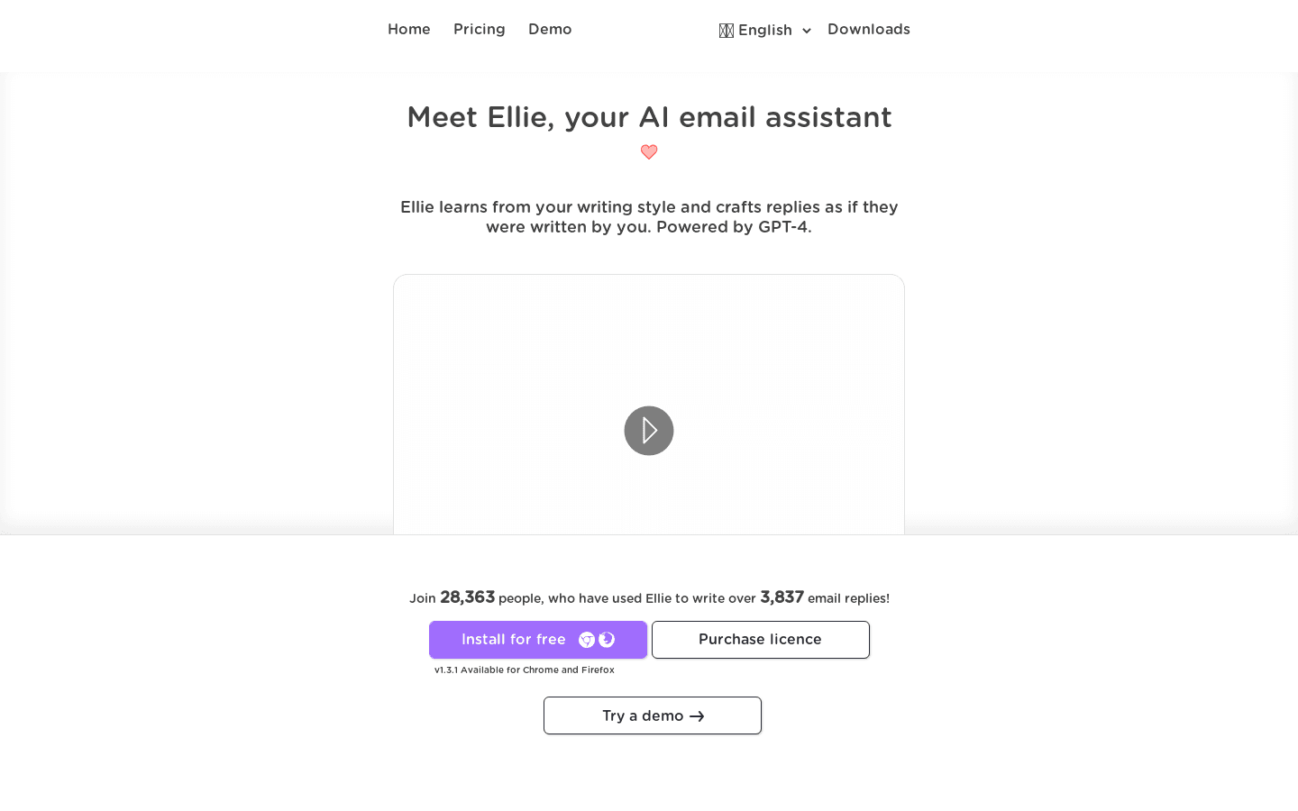 Ellie is an AI email assistant that generates response emails using GPT-4. Available via an extension, Ellie learns from your writing style and crafts replies as if they were written by you. Free and paid plans available.