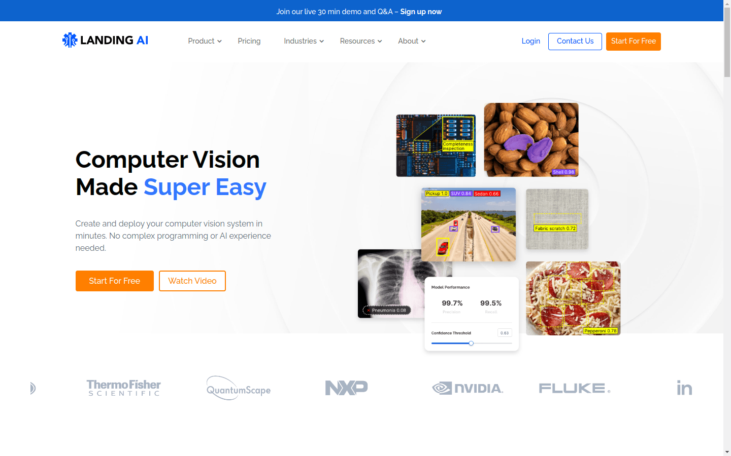 Landing AI is a computer vision platform and AI software company offering a cloud-based software, LandingLens, to solve problems like detecting wildfires, counting cell colonies, and identifying cattle. Free and paid plans available on their website, with account registration required.