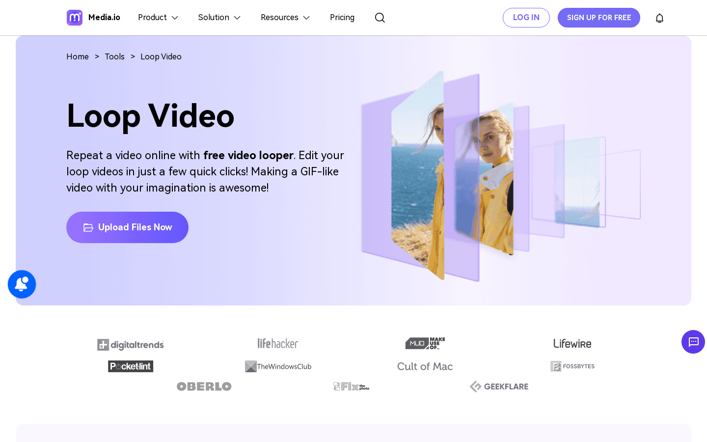 Loop Video is an online service that allows you to loop videos up to 8 times for free. With Media.io Online Video Editor, you can easily edit your loop videos in just a few clicks. Available on website and API.