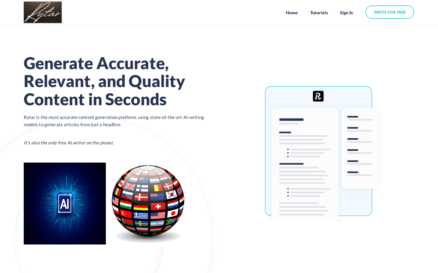 Rytar is a free online service that generates images, lyrics, and rewords text. It requires email and account registration. With around 300000 monthly visits, it's the most accurate content generation platform using state-of-the-art AI-writing models.