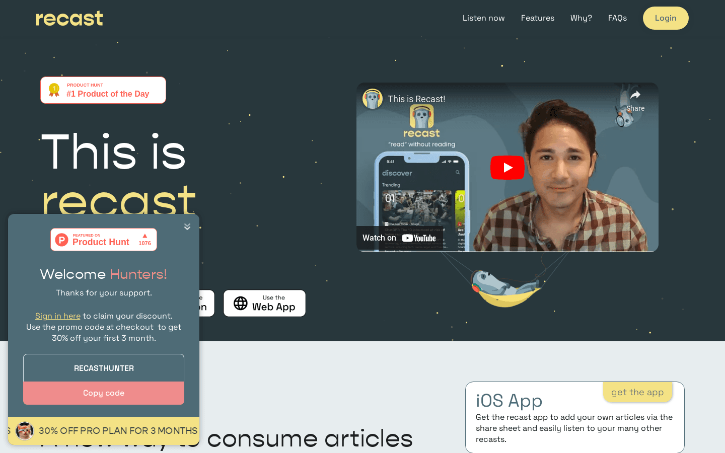 Recast AI is an online service that allows you to easily summarize articles and convert them into podcasts. With a free or paid plan, you can access this service through their website, extension, or iOS app. The only obstacle is that an email is required to use the service. With around 100,000 monthly visits, Recast AI provides a convenient way to consume content on the go or while working out.